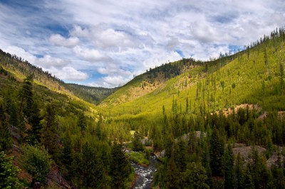 The North Fork John Day Wilderness along the North Fork John Day River Trail deep in Oregon’s Blue Mountain gold rush country is prime backpacking country. The 25 mile-long trail follows the John Day River downstream through a rimrock canyon featuring forests of Douglas Fir and lodgepole pines, rocky outcrops, smooth meadows, and