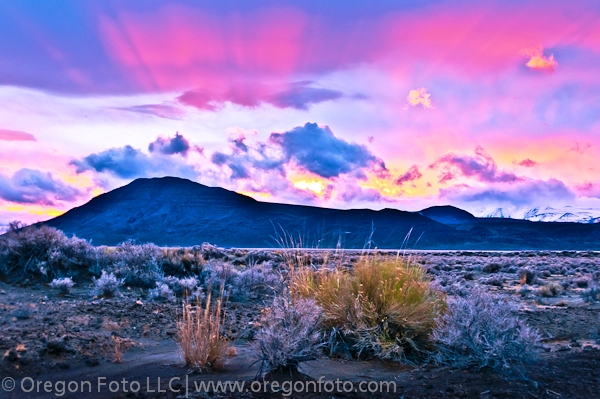 Located north of the Alvord Desert playa, the basin is split into two distinct valleys by a dark ridge that runs south from the Sheepshead Mountain Range. Mickey Butte is the highest point of this ridge at 6,294 feet. This alkali flat desert is one of the most remote and sensationally wild locations in Oregon. Attracting few visitors a year willing to make the long drive with many on gravel and dirt roads, it is an ultimate destination for those seeking a solitude camping experience in the true Oregon outback.