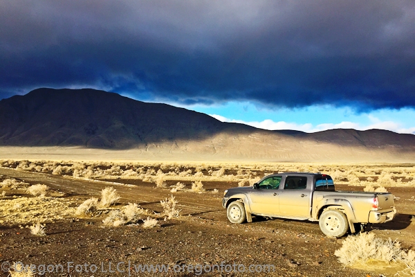 The coordinates to Mickey Basin are 42.7496882,-118.3100173. If you enter this into Google Maps, there is a good visual of this road system that shoots off of the main Fields-Denio Road that is described above. In wintertime, this road may be muddy, but given that it is mostly gravel and sand to Mickey Hot Springs, a passenger car should make it. High clearance 4WD is recommended at any season to drive further into Mickey Basin. Be sure to have plenty of gas, as the only stations are Burns to the north and Fields to the south. There is no water.