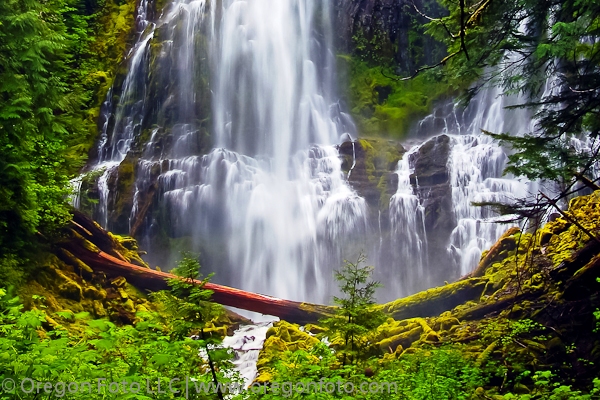Proxy Falls has a height of 226 feet and is fed by springs on a shoulder of North Sister. The falls get their name from Proxy Creek which tumbles over a moss covered basalt column of rock face. The best flows are year round. The magnitude and beauty of Proxy Falls is unbelievable – especially when you’re standing right next to it. Considering that you can scramble right up to the falls, this is one of the most enjoyable waterfall experiences in Oregon.